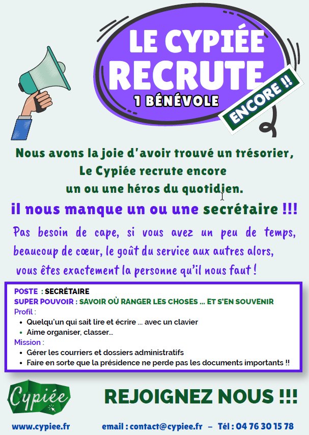L'association Cypiée cherche un bénévole et vous présente sa lettre mensuelle d'avril.