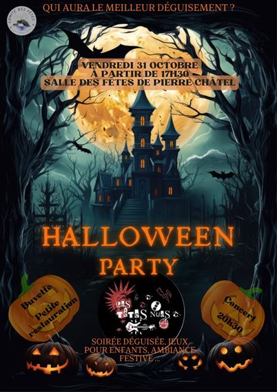 Salle des fêtes de Pierre-Châtel. Le comité des fêtes de Pierre-Châtel organise sa soirée Halloween le vendredi 31 octobre à partir de 17h00